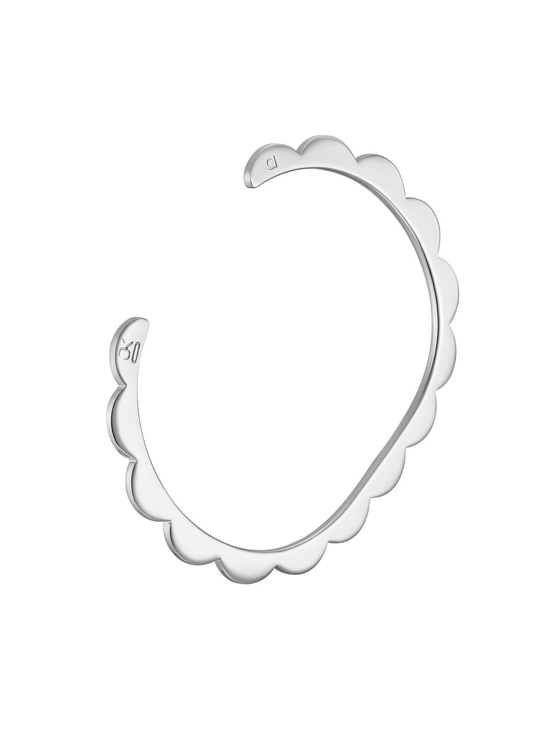 The carved edge of the bracelet refers to such pastry cutouts, while also evoking J. Kim's signature petals. The logo has a stamped effect on dough-like metal.