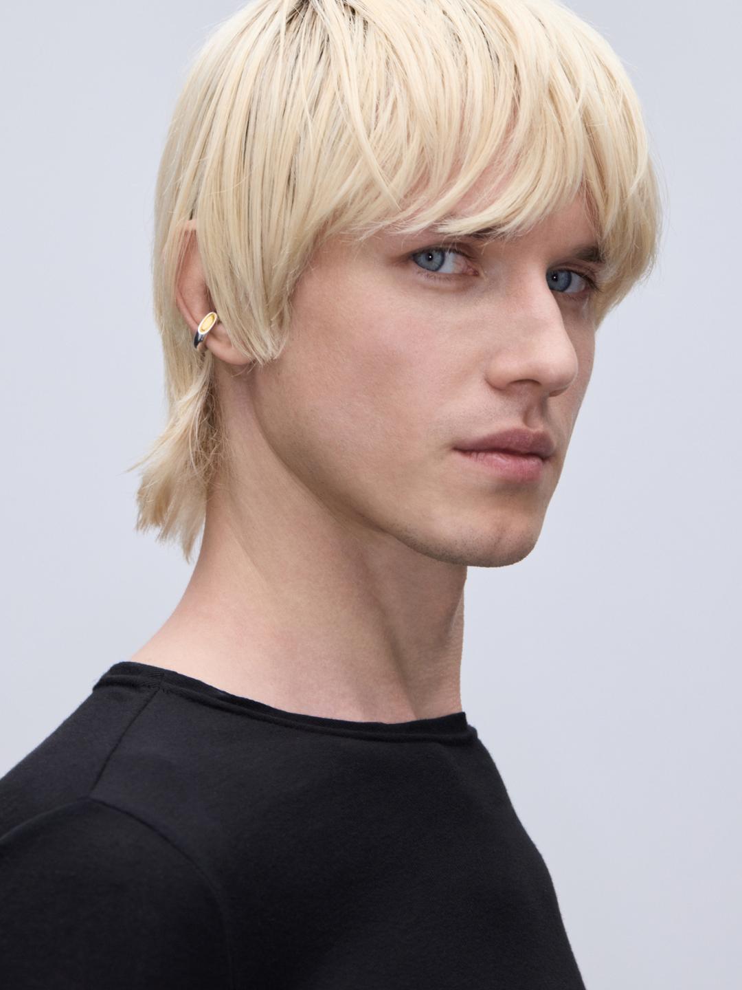 An everyday cuff with a vermeil detail, reminiscent of a cut stem or branch. The vermeil and rhodium finishes are applied by hand.
