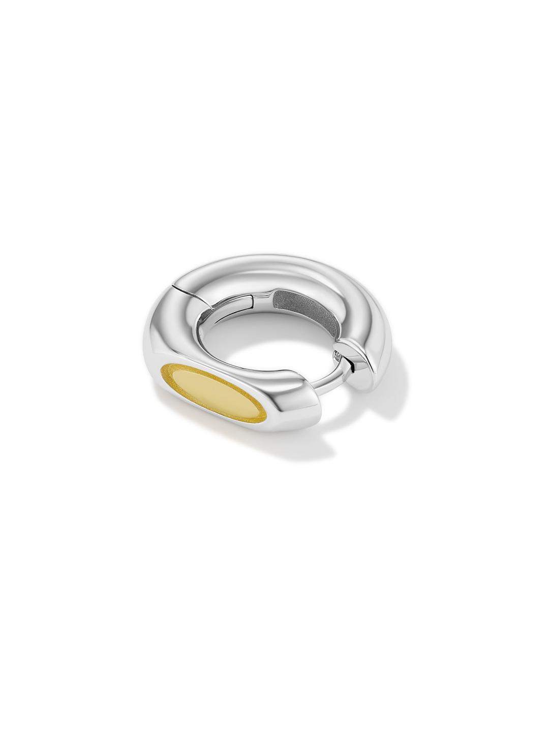 An everyday hoop earring with a vermeil detail, reminiscent of a cut stem or branch. The vermeil and rhodium finishes are applied by hand.