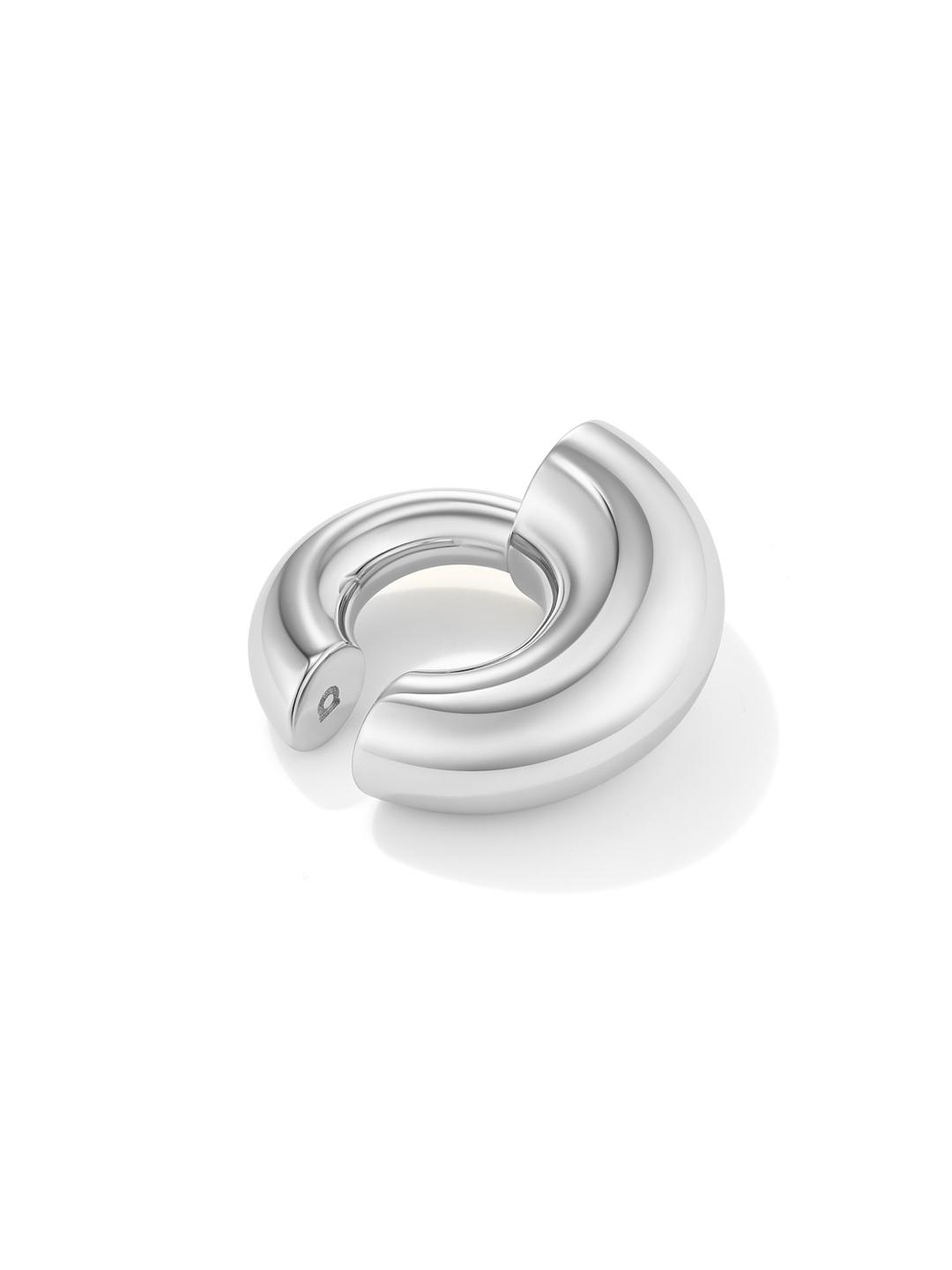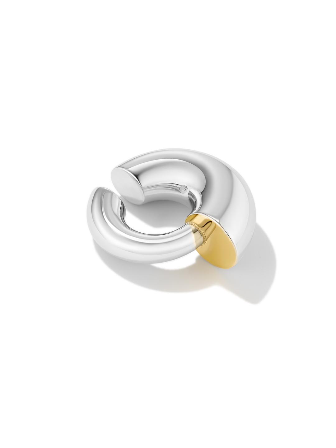 In this sculptural earcuff, two circles meet, and then move on into a new cycle.