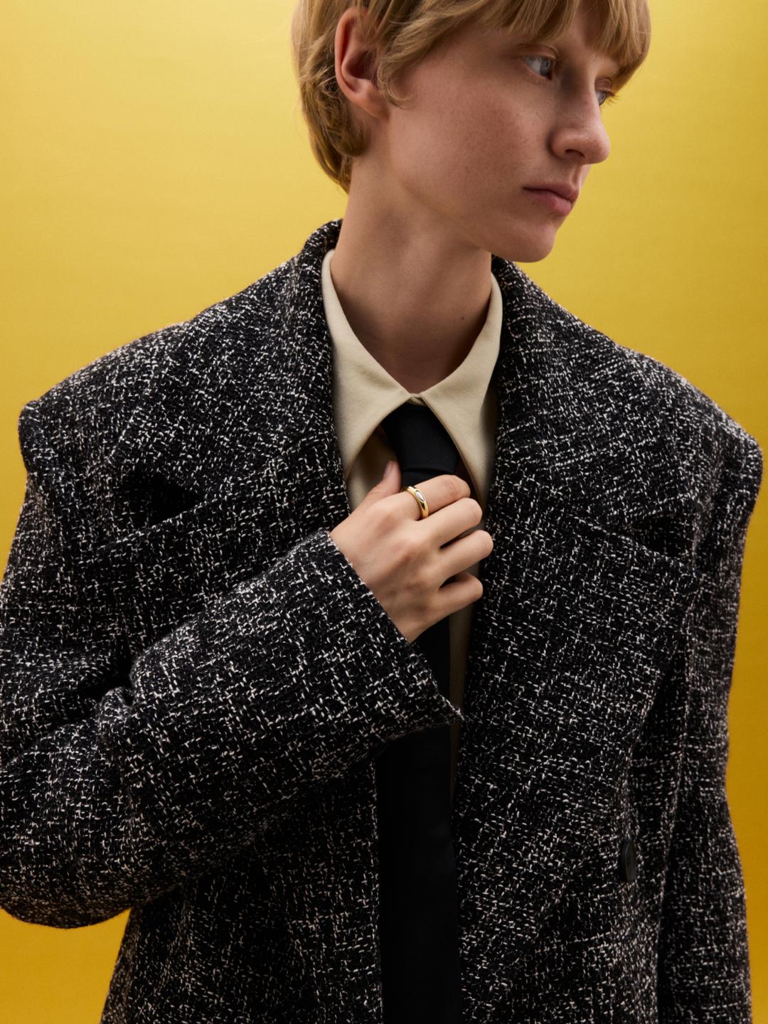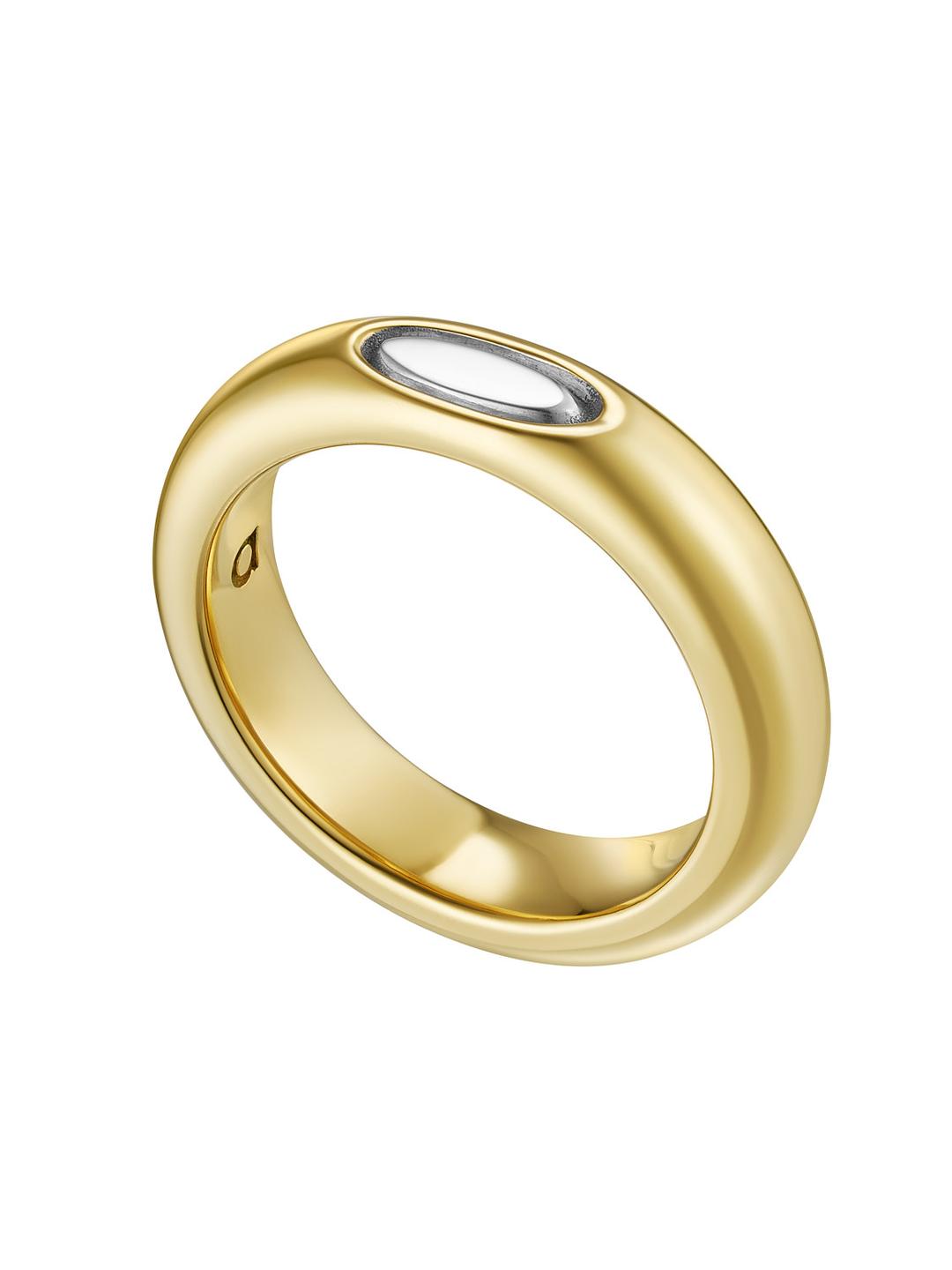 The clean band with a cut, reminiscent of a trimmed stem or twig. The vermeil and rhodium finishes are applied entirely by hand.
