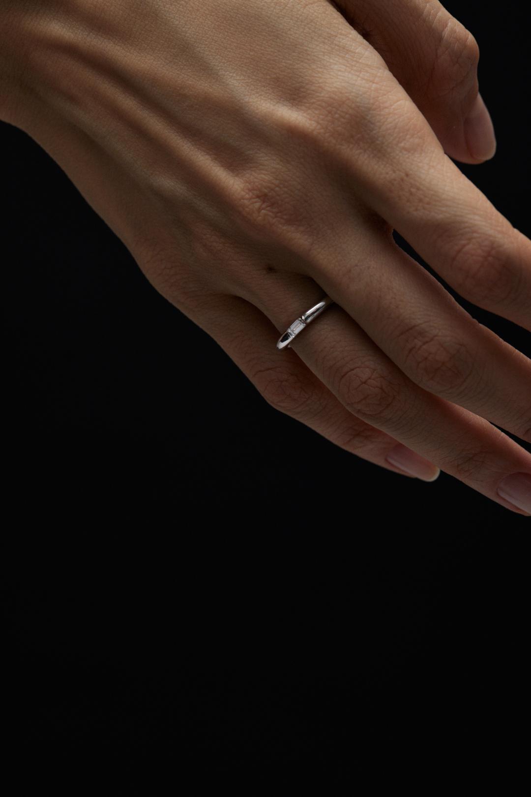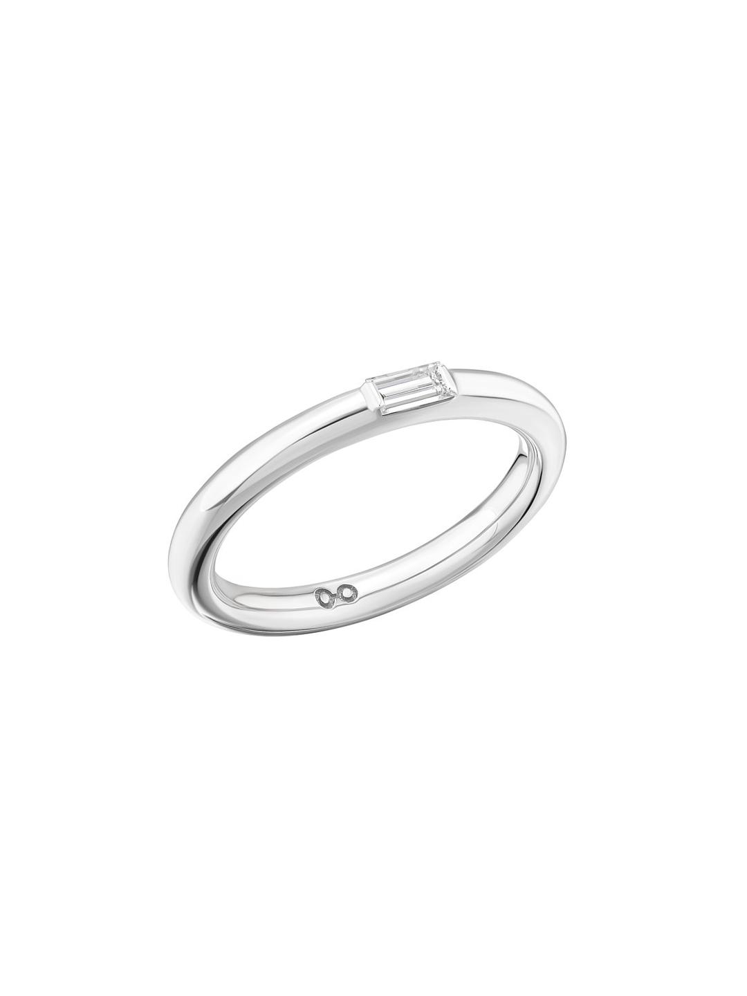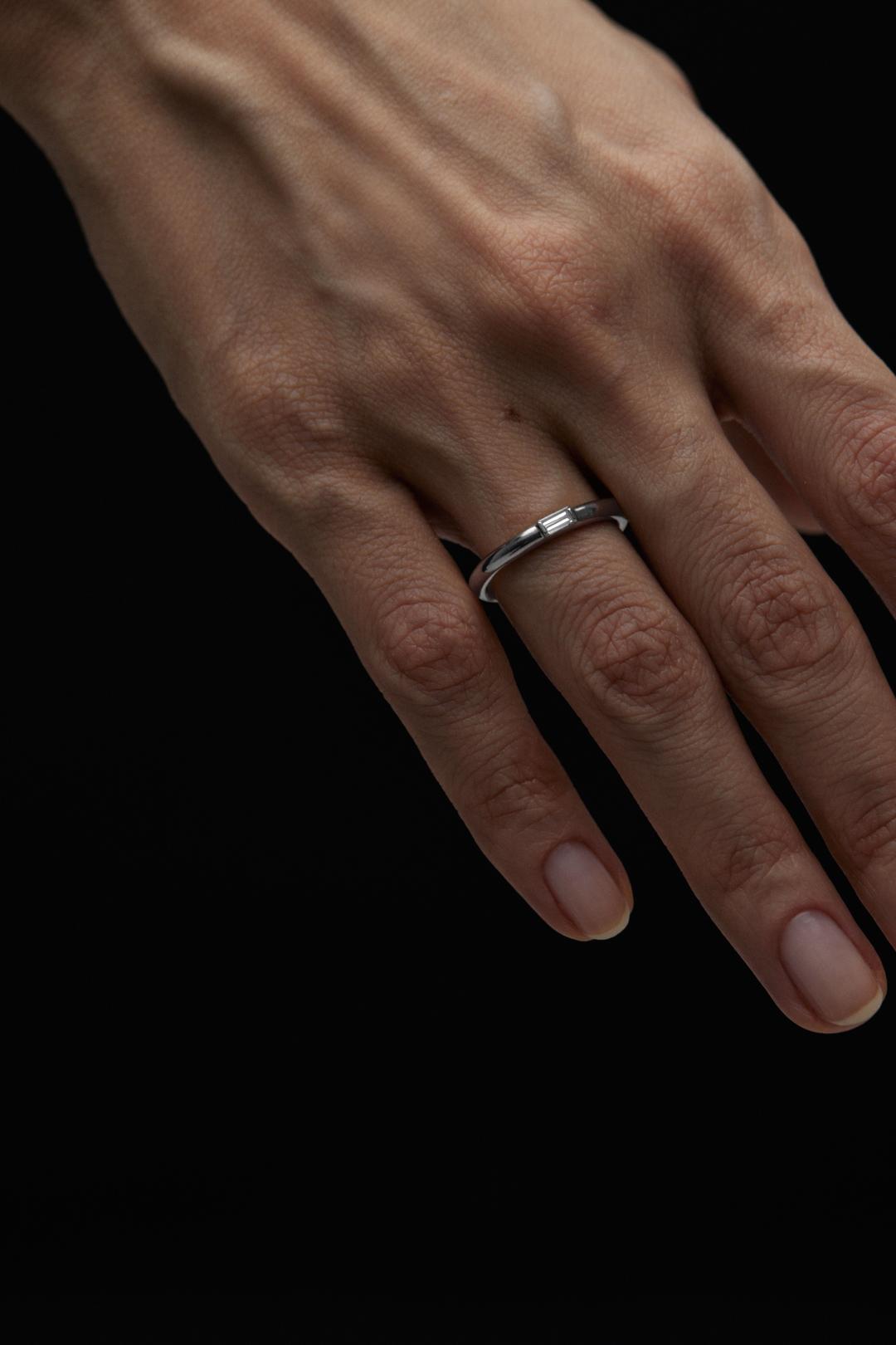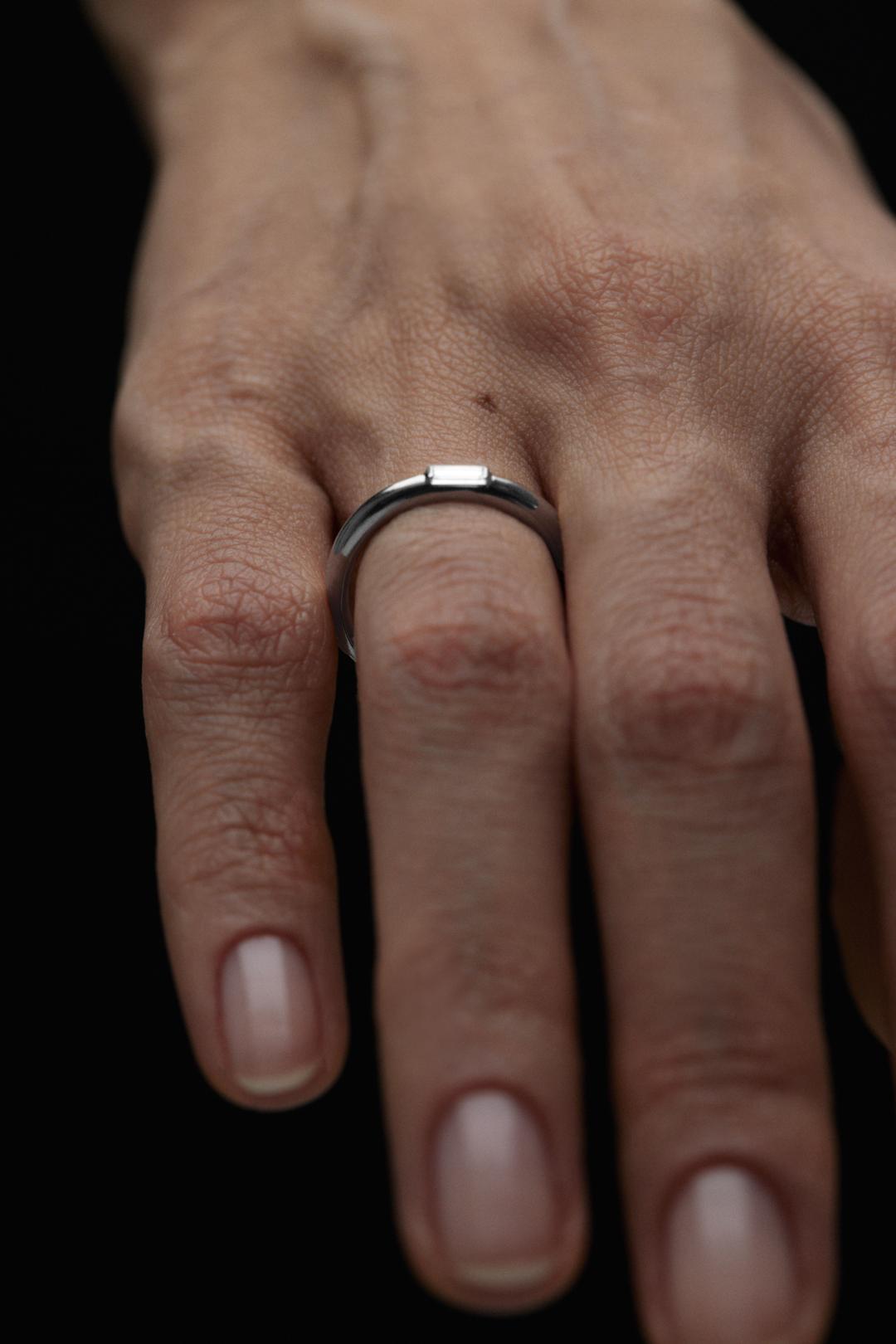 The ring for those who can't choose, for those who can't agree, for those who want to wear the same ring, for those who want one that's not too dressy, not too minimalist, not too thin, not too thick, but definitely cool. Yes. This is it. With a baguette diamond.